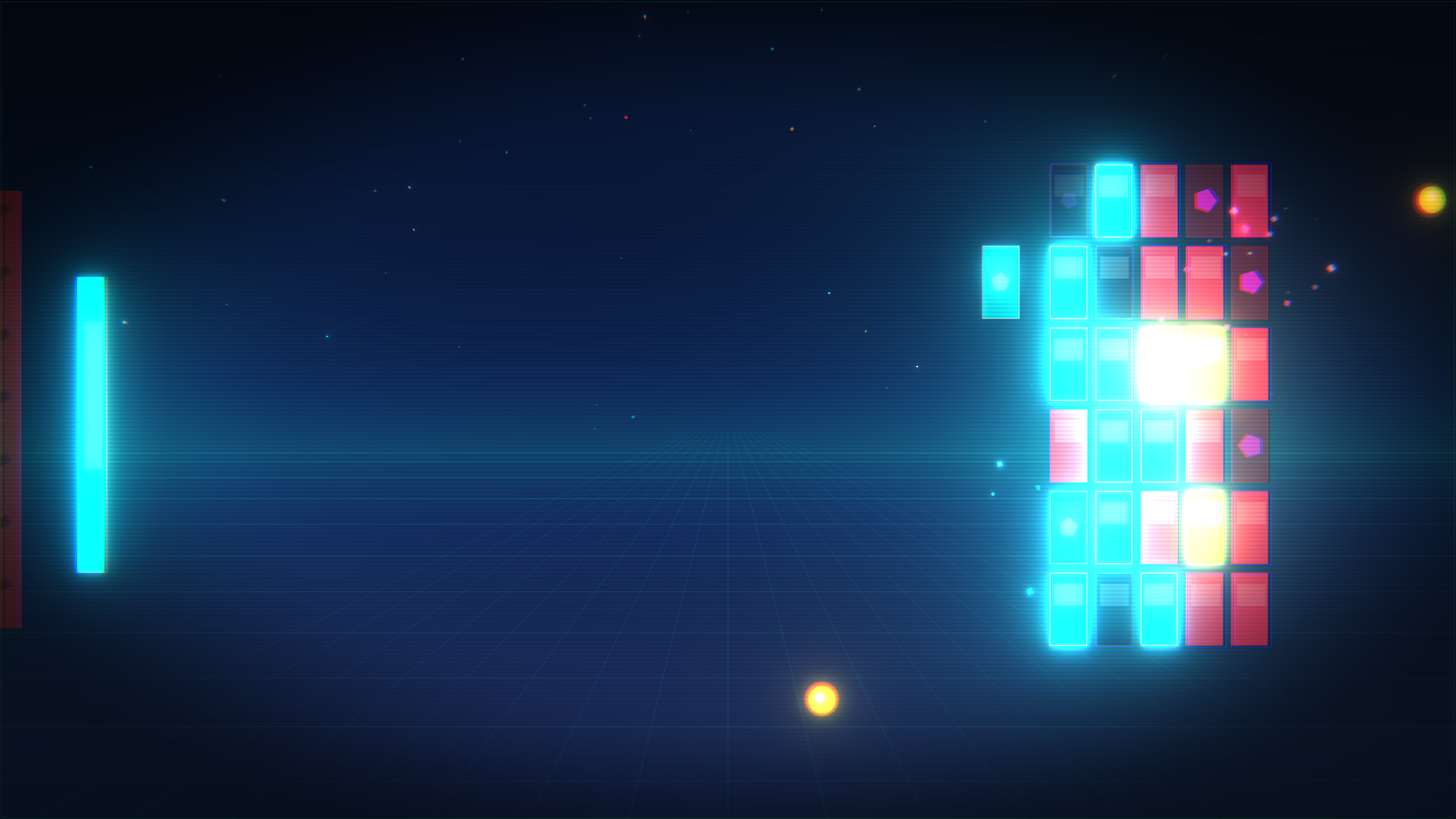 - Horizontal playfield with paddle-on-left, bricks-on-right layout
