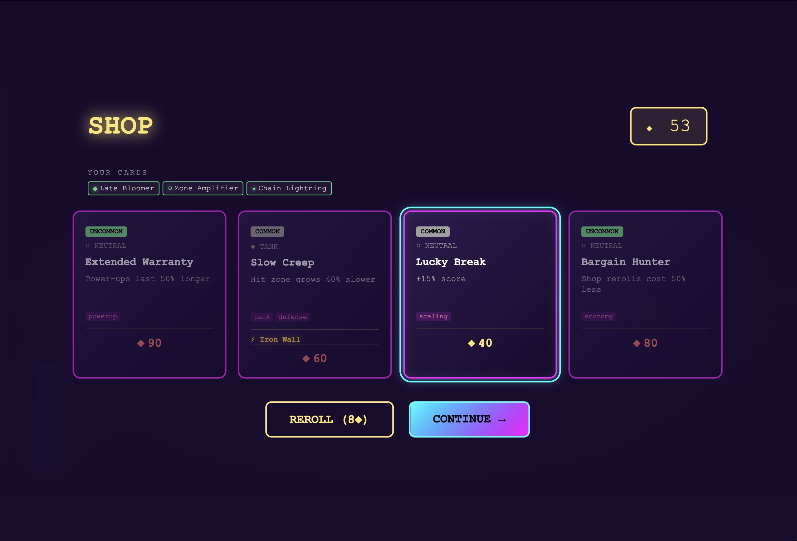 - Meta-progression: unlock new cards, perks, and cosmetics across runs
